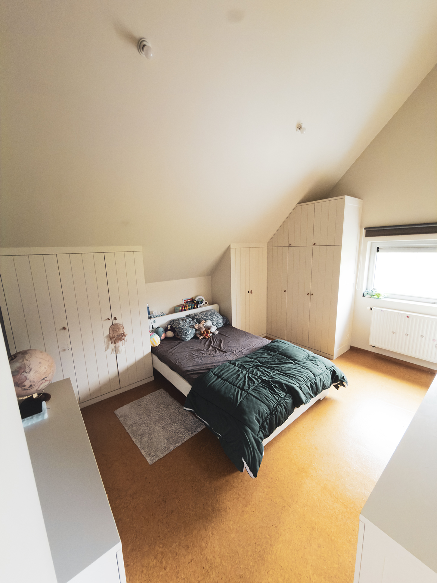 De hoogwaardige inbouwkasten in de berging en slaapkamers combineren praktisch opbergen met elegant design, zodat u meteen comfortabel kunt wonen zonder nieuwe meubels aan te schaffen.